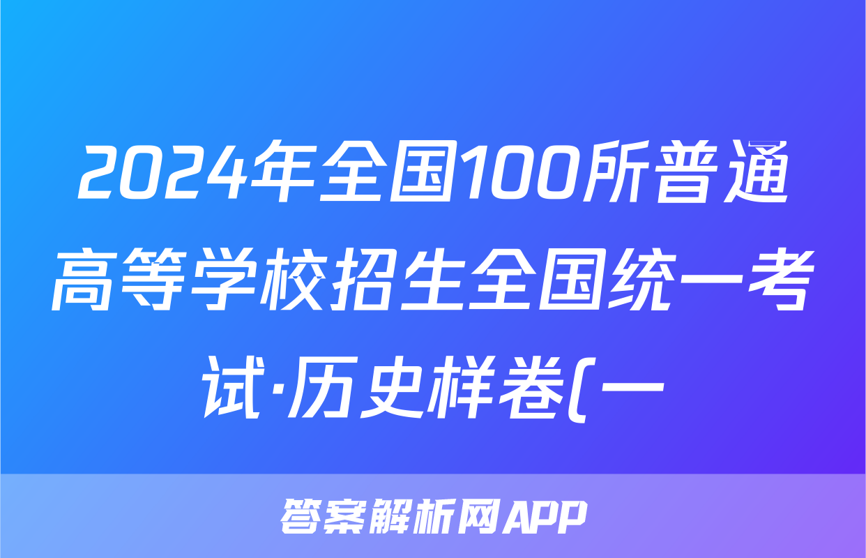 2024年全国100所普通高等学校招生全国统一考试·历史样卷(一)1[24·(新高考)高考样卷·历史·Y]试题正在持续更新,目前2026天舟高考答案网为大家整理了相关试题及答案,供大家查缺补漏,高效提升成绩。