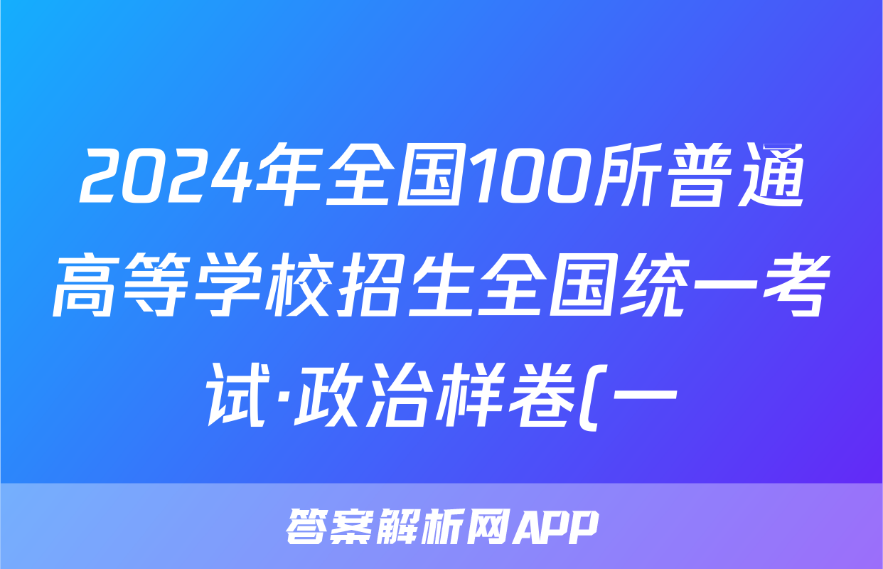 2024年全国100所普通高等学校招生全国统一考试·政治样卷(一)1[24·(新高考)高考样卷·政治·Y]试题正在持续更新,目前2026天舟高考答案网为大家整理了相关试题及答案,供大家查缺补漏,高效提升成绩。