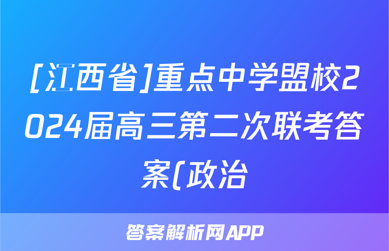 [江西省]重点中学盟校2024届高三第二次联考答案(政治)正在持续更新,目前2026天舟高考答案网为大家整理了相关试题及答案,供大家查缺补漏,高效提升成绩。