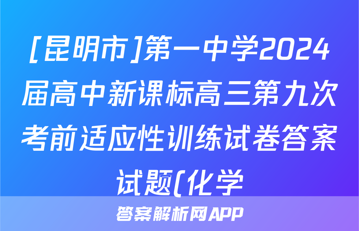 [昆明市]第一中学2024届高中新课标高三第九次考前适应性训练试卷答案试题(化学)正在持续更新,目前2026天舟高考答案网为大家整理了相关试题及答案,供大家查缺补漏,高效提升成绩。