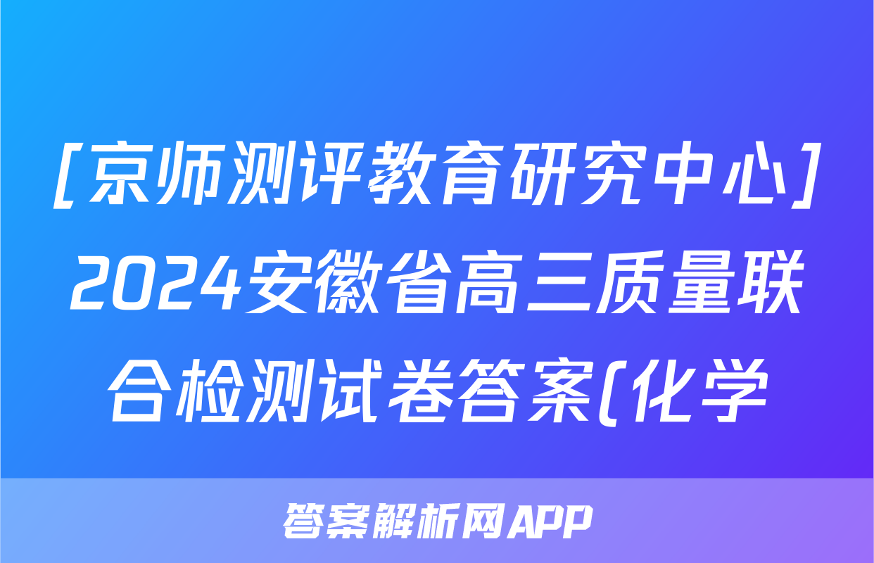[京师测评教育研究中心]2024安徽省高三质量联合检测试卷答案(化学)