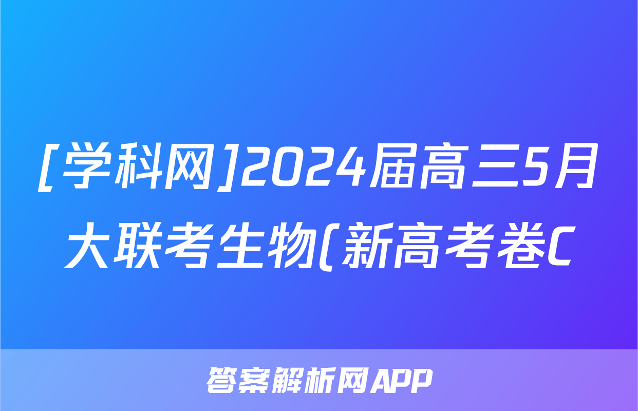 [学科网]2024届高三5月大联考生物(新高考卷C)(新教材)试题正在持续更新,目前2026天舟高考答案网为大家整理了相关试题及答案,供大家查缺补漏,高效提升成绩。