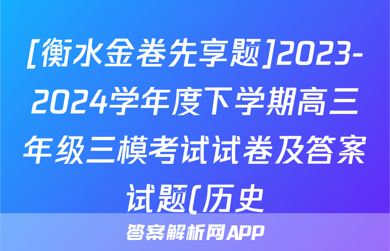 [衡水金卷先享题]2023-2024学年度下学期高三年级三模考试试卷及答案试题(历史)正在持续更新,目前2026天舟高考答案网为大家整理了相关试题及答案,供大家查缺补漏,高效提升成绩。