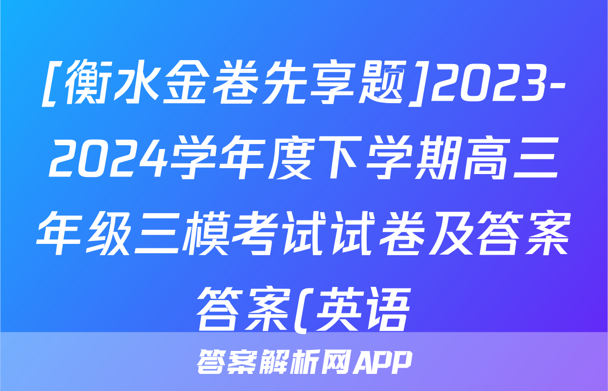 [衡水金卷先享题]2023-2024学年度下学期高三年级三模考试试卷及答案答案(英语)正在持续更新,目前2026天舟高考答案网为大家整理了相关试题及答案,供大家查缺补漏,高效提升成绩。