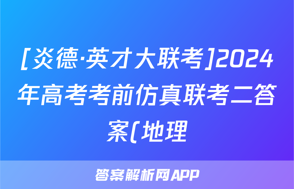 [炎德·英才大联考]2024年高考考前仿真联考二答案(地理)正在持续更新,目前2026天舟高考答案网为大家整理了相关试题及答案,供大家查缺补漏,高效提升成绩。