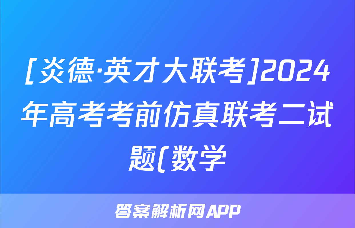 [炎德·英才大联考]2024年高考考前仿真联考二试题(数学)正在持续更新,目前2026天舟高考答案网为大家整理了相关试题及答案,供大家查缺补漏,高效提升成绩。