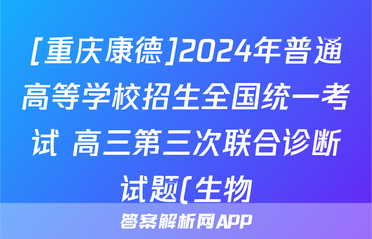 [重庆康德]2024年普通高等学校招生全国统一考试 高三第三次联合诊断试题(生物)正在持续更新,目前2026天舟高考答案网为大家整理了相关试题及答案,供大家查缺补漏,高效提升成绩。