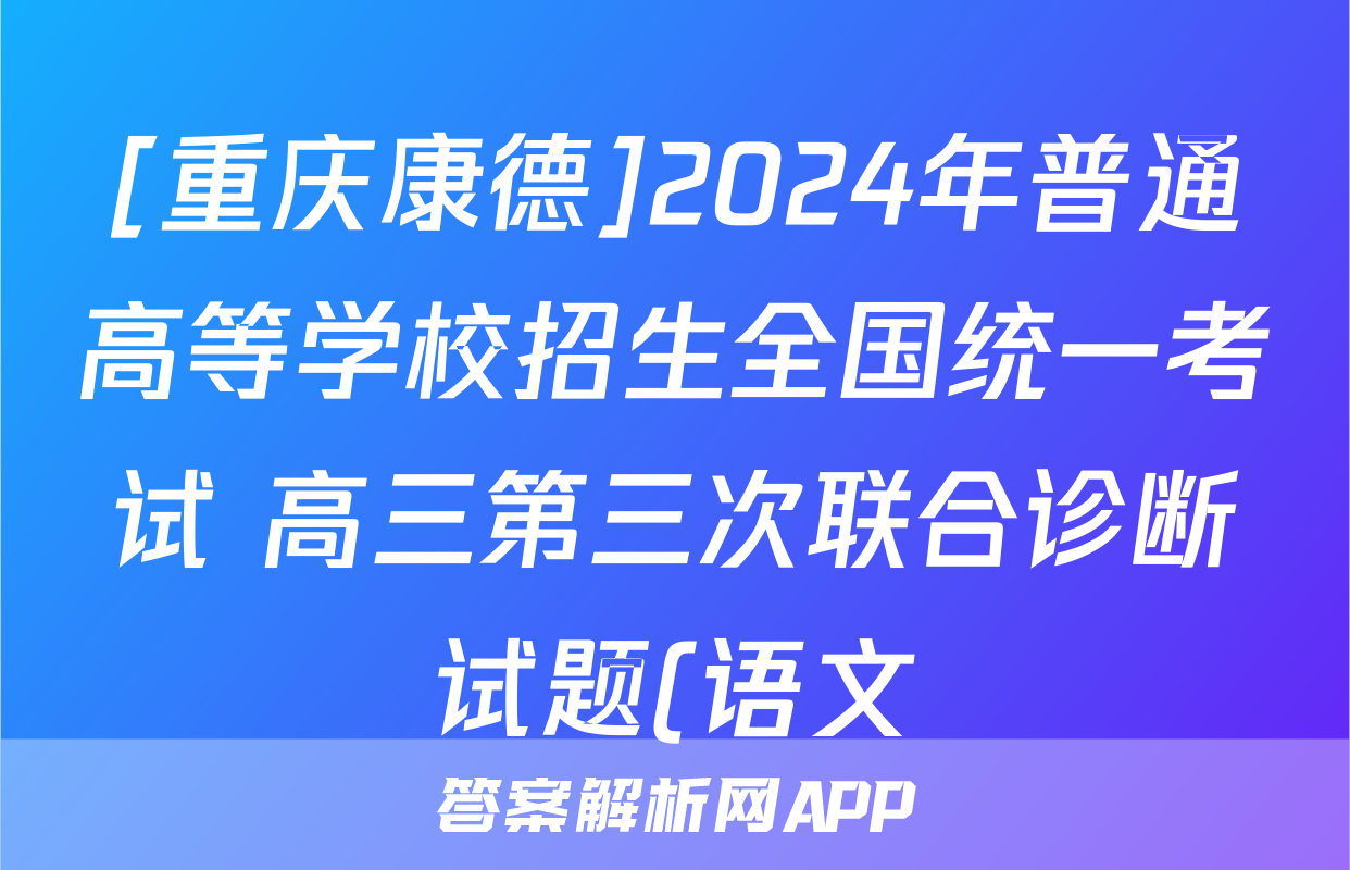 [重庆康德]2024年普通高等学校招生全国统一考试 高三第三次联合诊断试题(语文)正在持续更新,目前2026天舟高考答案网为大家整理了相关试题及答案,供大家查缺补漏,高效提升成绩。