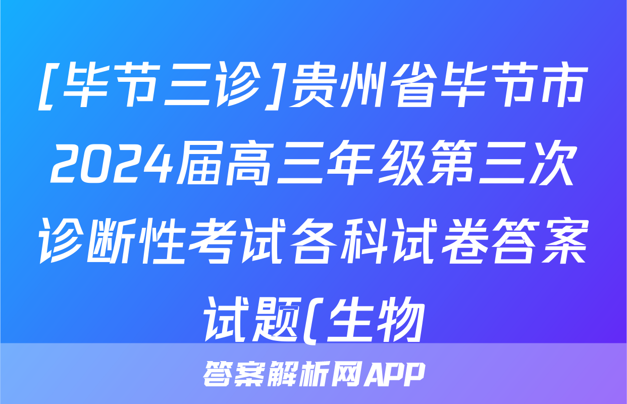 [毕节三诊]贵州省毕节市2024届高三年级第三次诊断性考试各科试卷答案试题(生物)正在持续更新,目前2026天舟高考答案网为大家整理了相关试题及答案,供大家查缺补漏,高效提升成绩。