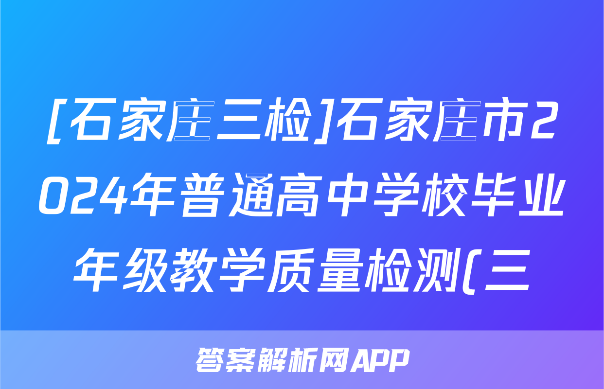 [石家庄三检]石家庄市2024年普通高中学校毕业年级教学质量检测(三)3试题(历史)正在持续更新,目前2026天舟高考答案网为大家整理了相关试题及答案,供大家查缺补漏,高效提升成绩。