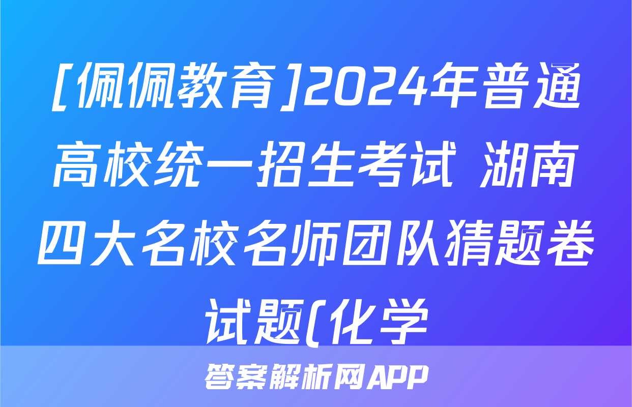 [佩佩教育]2024年普通高校统一招生考试 湖南四大名校名师团队猜题卷试题(化学)正在持续更新,目前2026天舟高考答案网为大家整理了相关试题及答案,供大家查缺补漏,高效提升成绩。