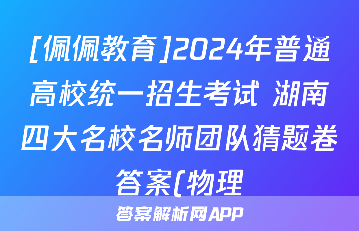 [佩佩教育]2024年普通高校统一招生考试 湖南四大名校名师团队猜题卷答案(物理)正在持续更新,目前2026天舟高考答案网为大家整理了相关试题及答案,供大家查缺补漏,高效提升成绩。