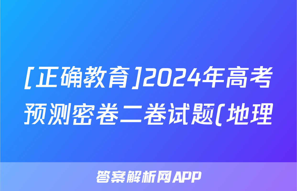 [正确教育]2024年高考预测密卷二卷试题(地理)正在持续更新,目前2026天舟高考答案网为大家整理了相关试题及答案,供大家查缺补漏,高效提升成绩。