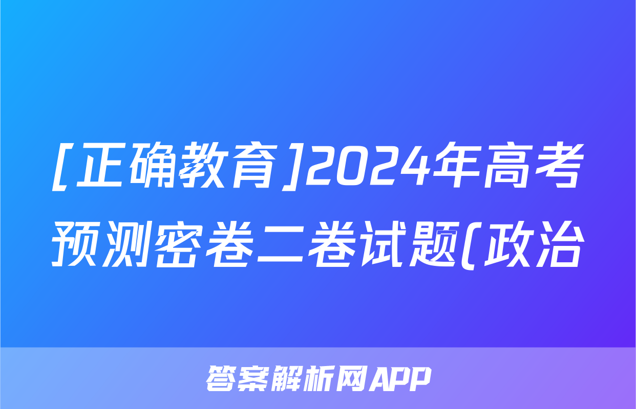 [正确教育]2024年高考预测密卷二卷试题(政治)正在持续更新,目前2026天舟高考答案网为大家整理了相关试题及答案,供大家查缺补漏,高效提升成绩。