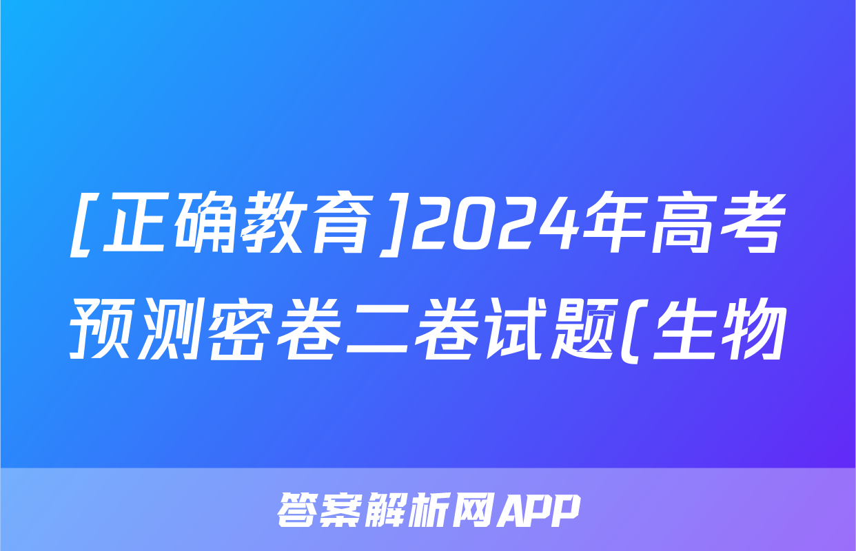 [正确教育]2024年高考预测密卷二卷试题(生物)正在持续更新,目前2026天舟高考答案网为大家整理了相关试题及答案,供大家查缺补漏,高效提升成绩。