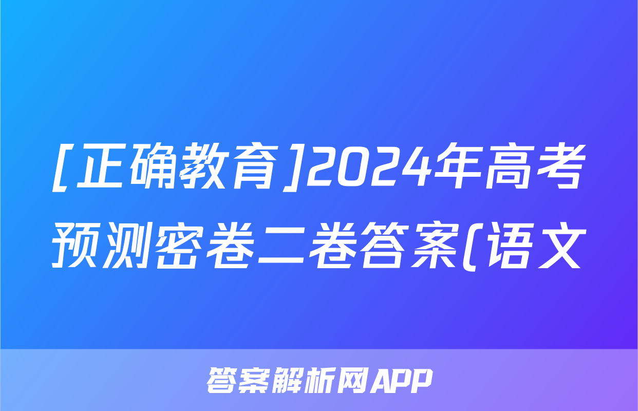 [正确教育]2024年高考预测密卷二卷答案(语文)正在持续更新,目前2026天舟高考答案网为大家整理了相关试题及答案,供大家查缺补漏,高效提升成绩。