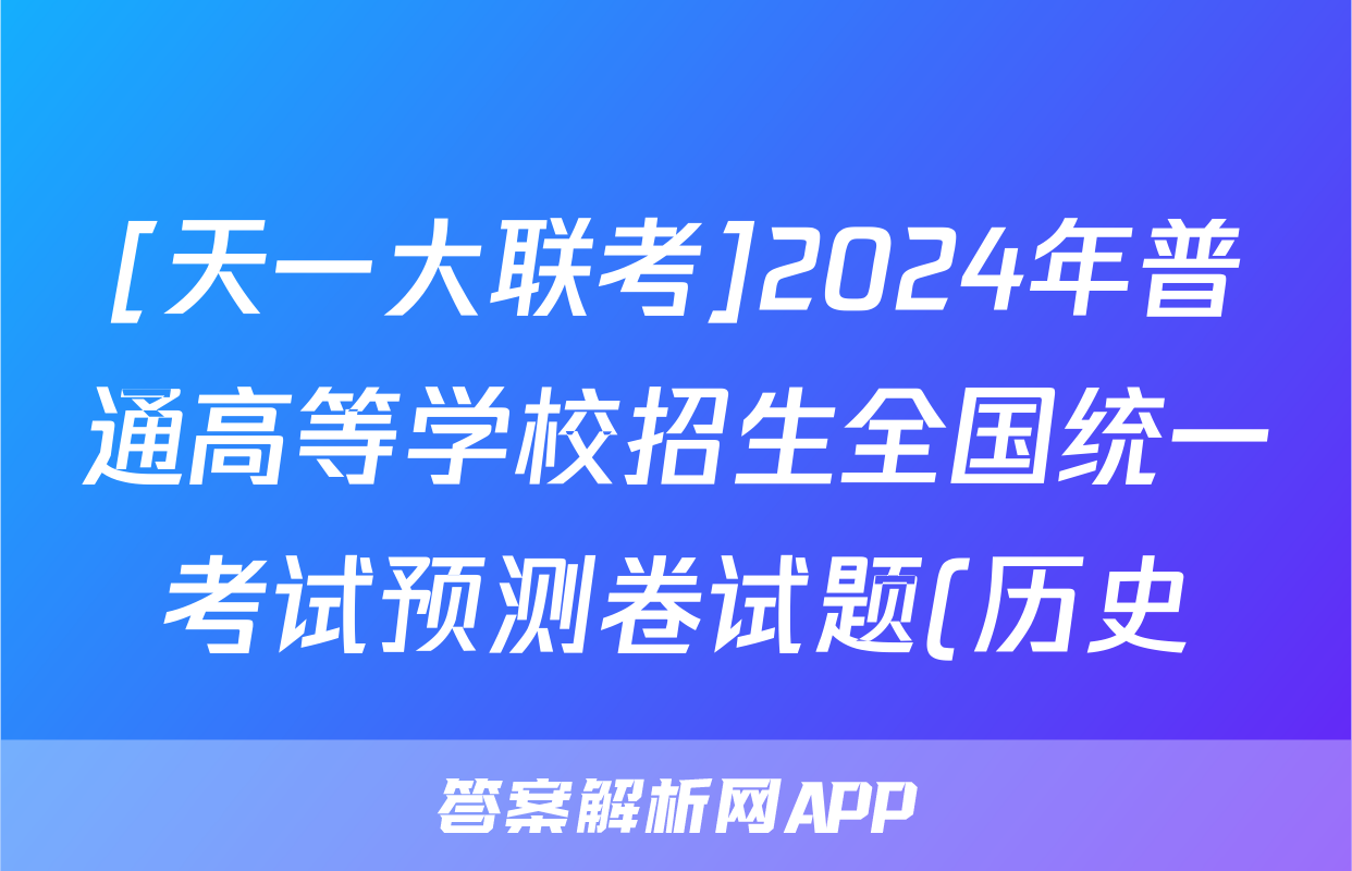 [天一大联考]2024年普通高等学校招生全国统一考试预测卷试题(历史)正在持续更新,目前2026天舟高考答案网为大家整理了相关试题及答案,供大家查缺补漏,高效提升成绩。