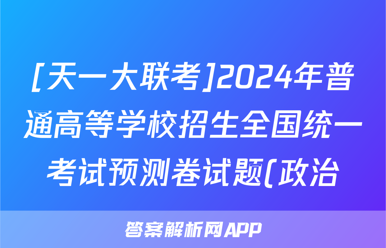 [天一大联考]2024年普通高等学校招生全国统一考试预测卷试题(政治)正在持续更新,目前2026天舟高考答案网为大家整理了相关试题及答案,供大家查缺补漏,高效提升成绩。