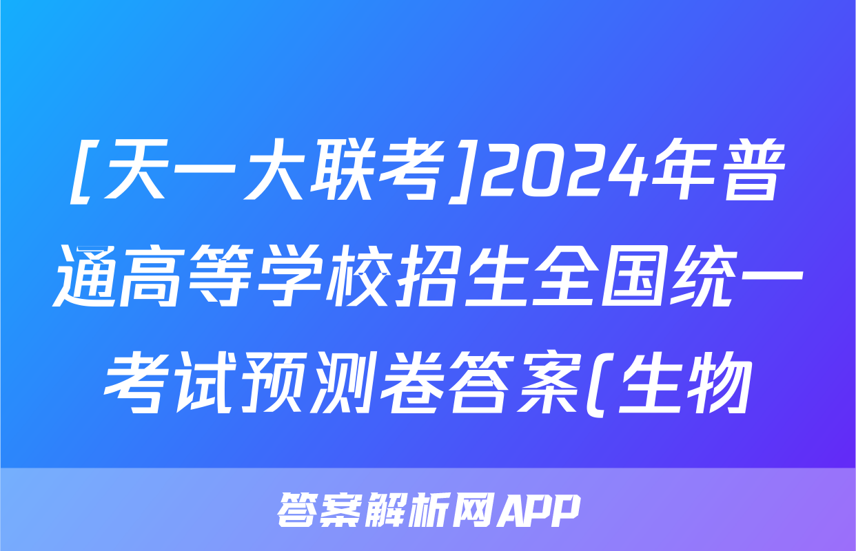 [天一大联考]2024年普通高等学校招生全国统一考试预测卷答案(生物)正在持续更新,目前2026天舟高考答案网为大家整理了相关试题及答案,供大家查缺补漏,高效提升成绩。