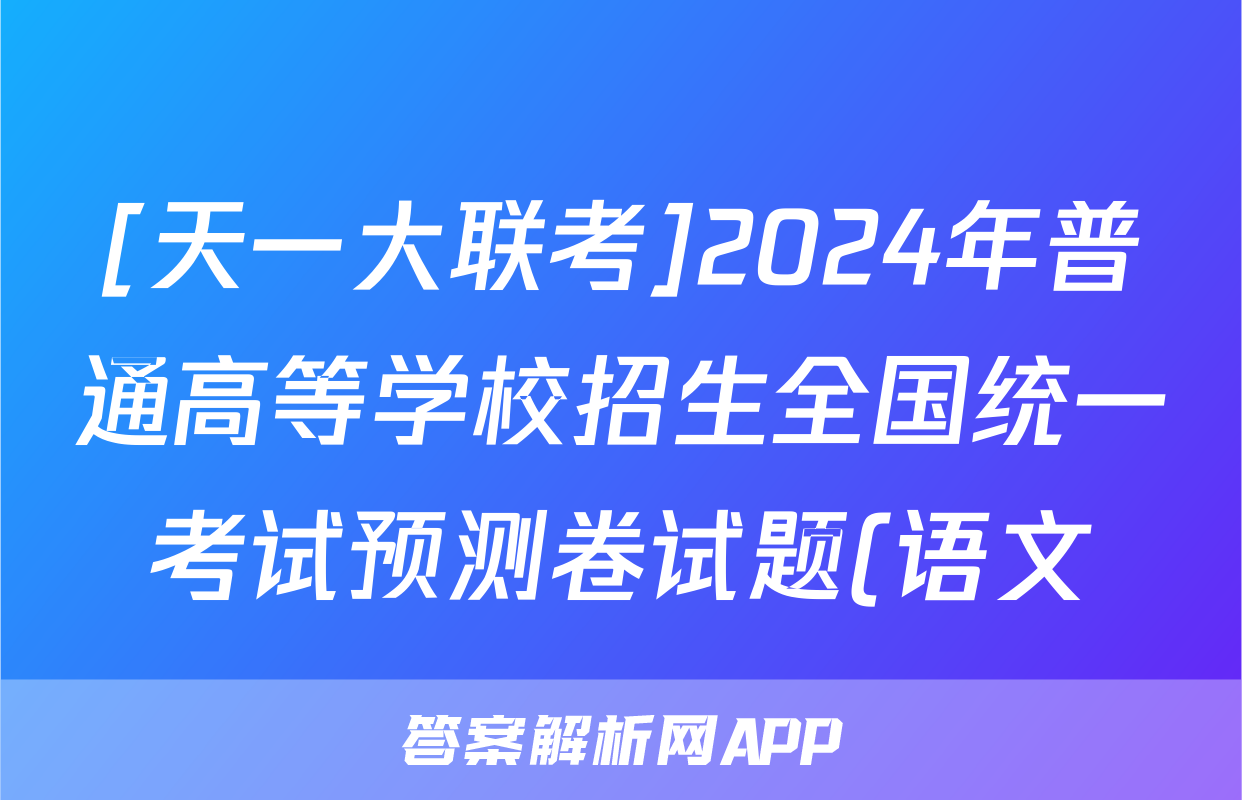 [天一大联考]2024年普通高等学校招生全国统一考试预测卷试题(语文)正在持续更新,目前2026天舟高考答案网为大家整理了相关试题及答案,供大家查缺补漏,高效提升成绩。