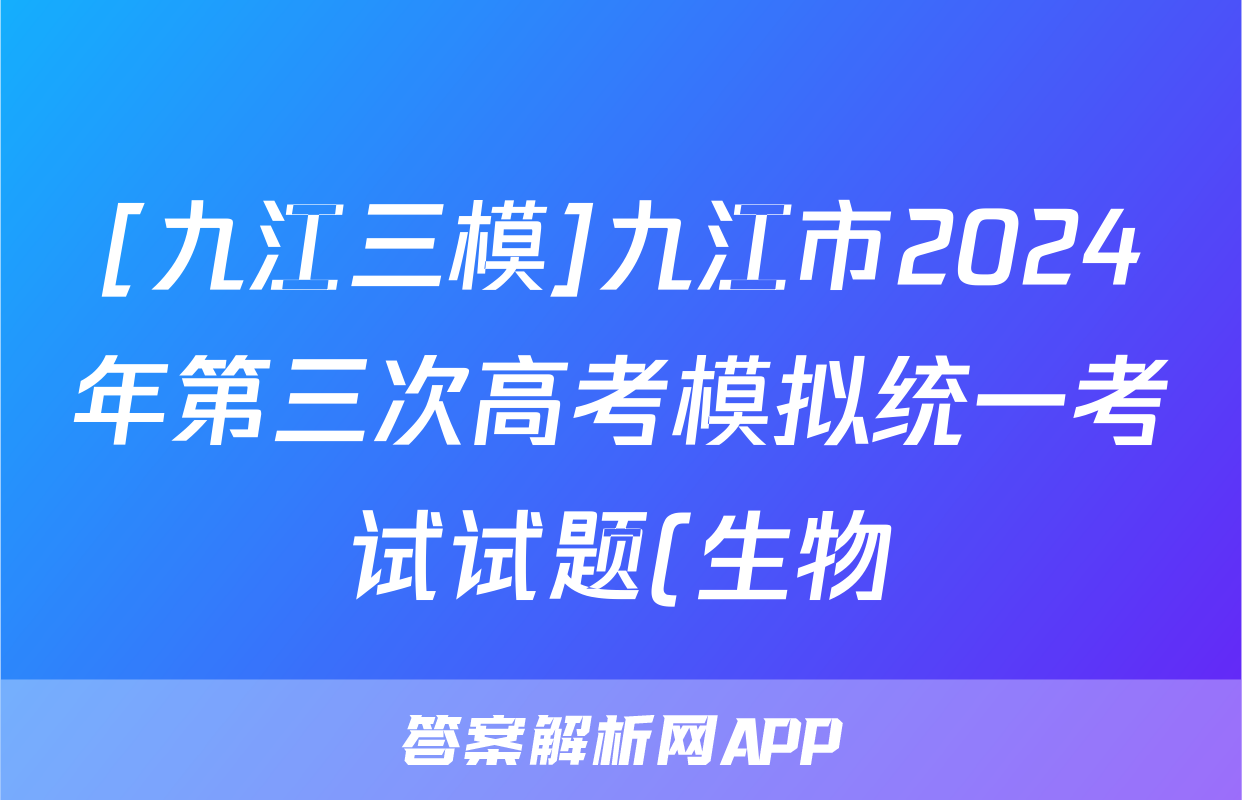 [九江三模]九江市2024年第三次高考模拟统一考试试题(生物)正在持续更新,目前2026天舟高考答案网为大家整理了相关试题及答案,供大家查缺补漏,高效提升成绩。