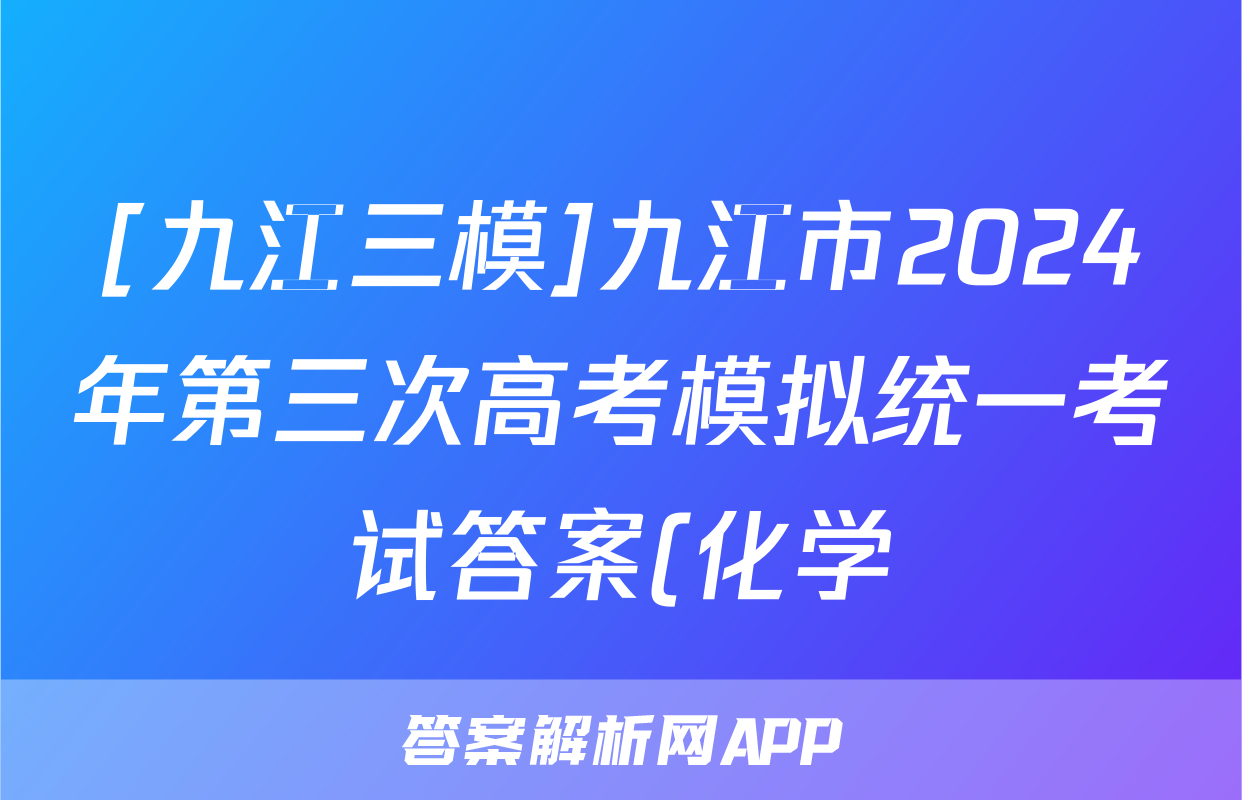 [九江三模]九江市2024年第三次高考模拟统一考试答案(化学)正在持续更新,目前2026天舟高考答案网为大家整理了相关试题及答案,供大家查缺补漏,高效提升成绩。