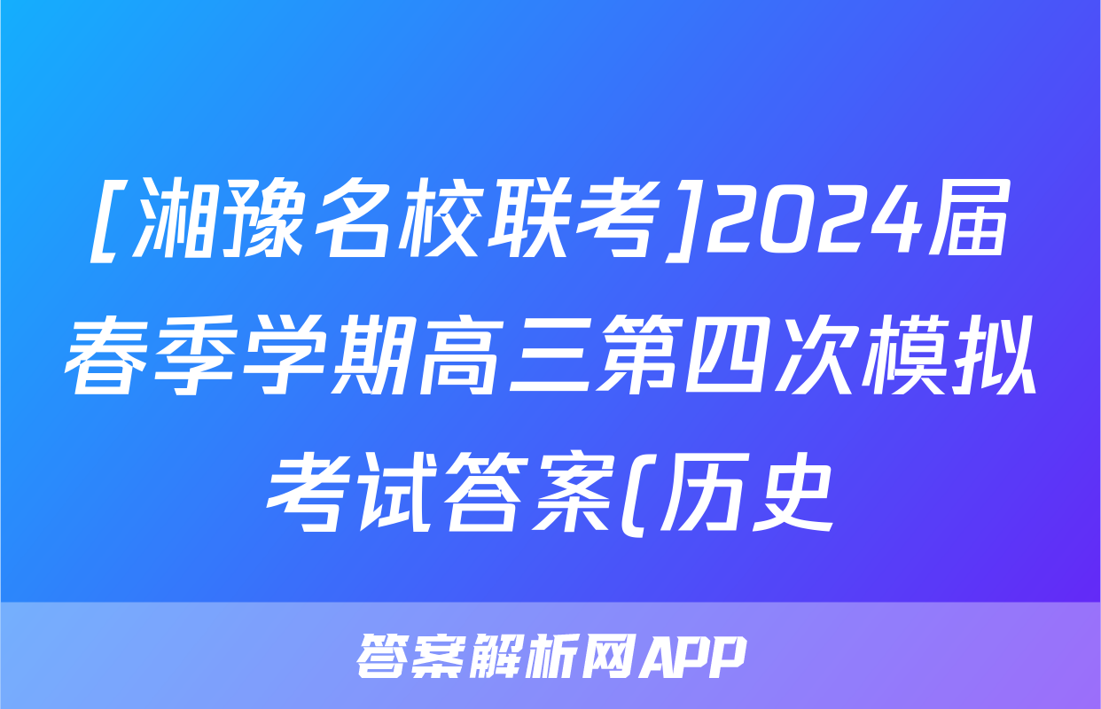 [湘豫名校联考]2024届春季学期高三第四次模拟考试答案(历史)正在持续更新,目前2026天舟高考答案网为大家整理了相关试题及答案,供大家查缺补漏,高效提升成绩。