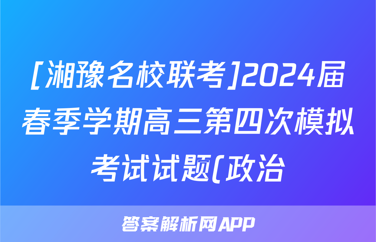 [湘豫名校联考]2024届春季学期高三第四次模拟考试试题(政治)正在持续更新,目前2026天舟高考答案网为大家整理了相关试题及答案,供大家查缺补漏,高效提升成绩。