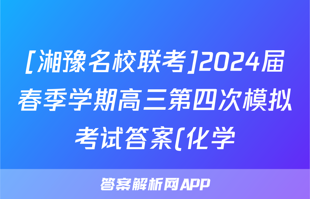 [湘豫名校联考]2024届春季学期高三第四次模拟考试答案(化学)正在持续更新,目前2026天舟高考答案网为大家整理了相关试题及答案,供大家查缺补漏,高效提升成绩。