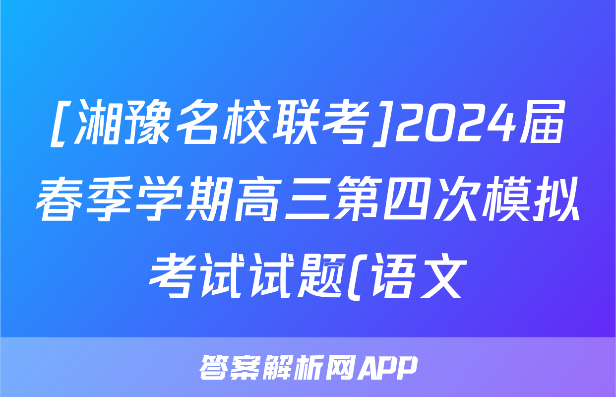 [湘豫名校联考]2024届春季学期高三第四次模拟考试试题(语文)正在持续更新,目前2026天舟高考答案网为大家整理了相关试题及答案,供大家查缺补漏,高效提升成绩。