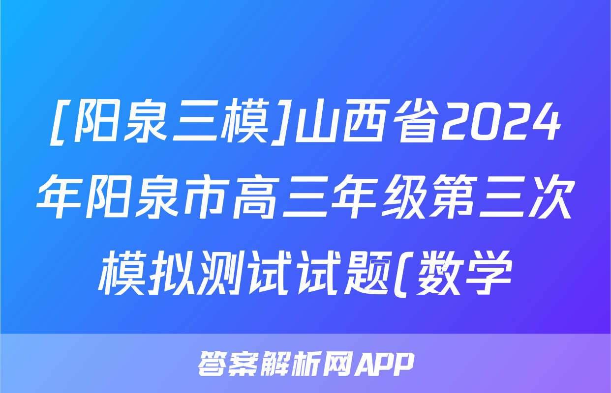 [阳泉三模]山西省2024年阳泉市高三年级第三次模拟测试试题(数学)正在持续更新,目前2026天舟高考答案网为大家整理了相关试题及答案,供大家查缺补漏,高效提升成绩。