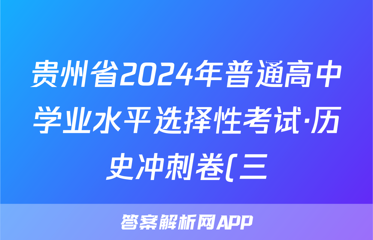 贵州省2024年普通高中学业水平选择性考试·历史冲刺卷(三)3[24·(新高考)CCJ·历史·GZ]答案正在持续更新,目前2026天舟高考答案网为大家整理了相关试题及答案,供大家查缺补漏,高效提升成绩。