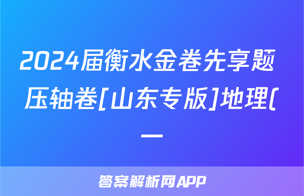 2024届衡水金卷先享题 压轴卷[山东专版]地理(一)1答案