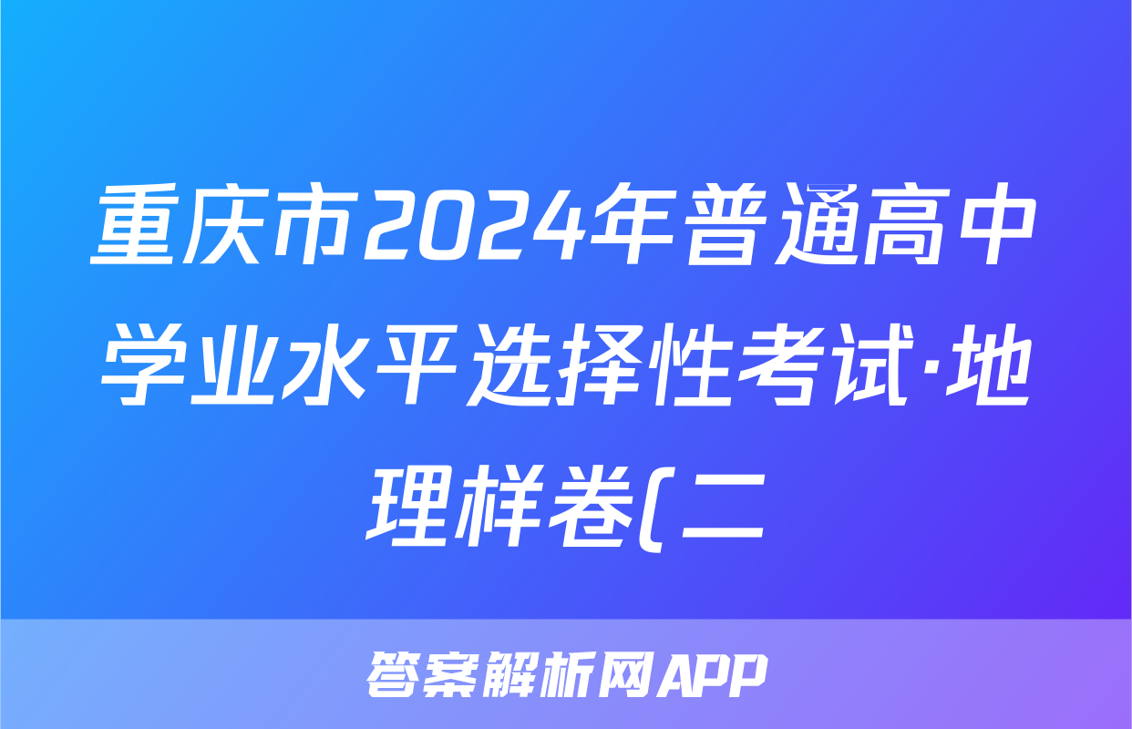 重庆市2024年普通高中学业水平选择性考试·地理样卷(二)2[24·(新高考)高考样卷·地理·CQ]试题正在持续更新,目前2026天舟高考答案网为大家整理了相关试题及答案,供大家查缺补漏,高效提升成绩。