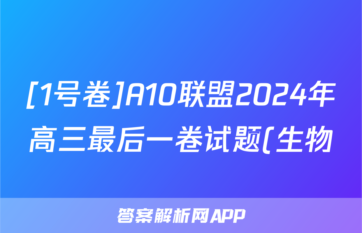 [1号卷]A10联盟2024年高三最后一卷试题(生物)正在持续更新,目前2026天舟高考答案网为大家整理了相关试题及答案,供大家查缺补漏,高效提升成绩。