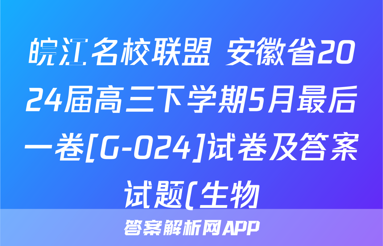 皖江名校联盟 安徽省2024届高三下学期5月最后一卷[G-024]试卷及答案试题(生物)正在持续更新,目前2026天舟高考答案网为大家整理了相关试题及答案,供大家查缺补漏,高效提升成绩。