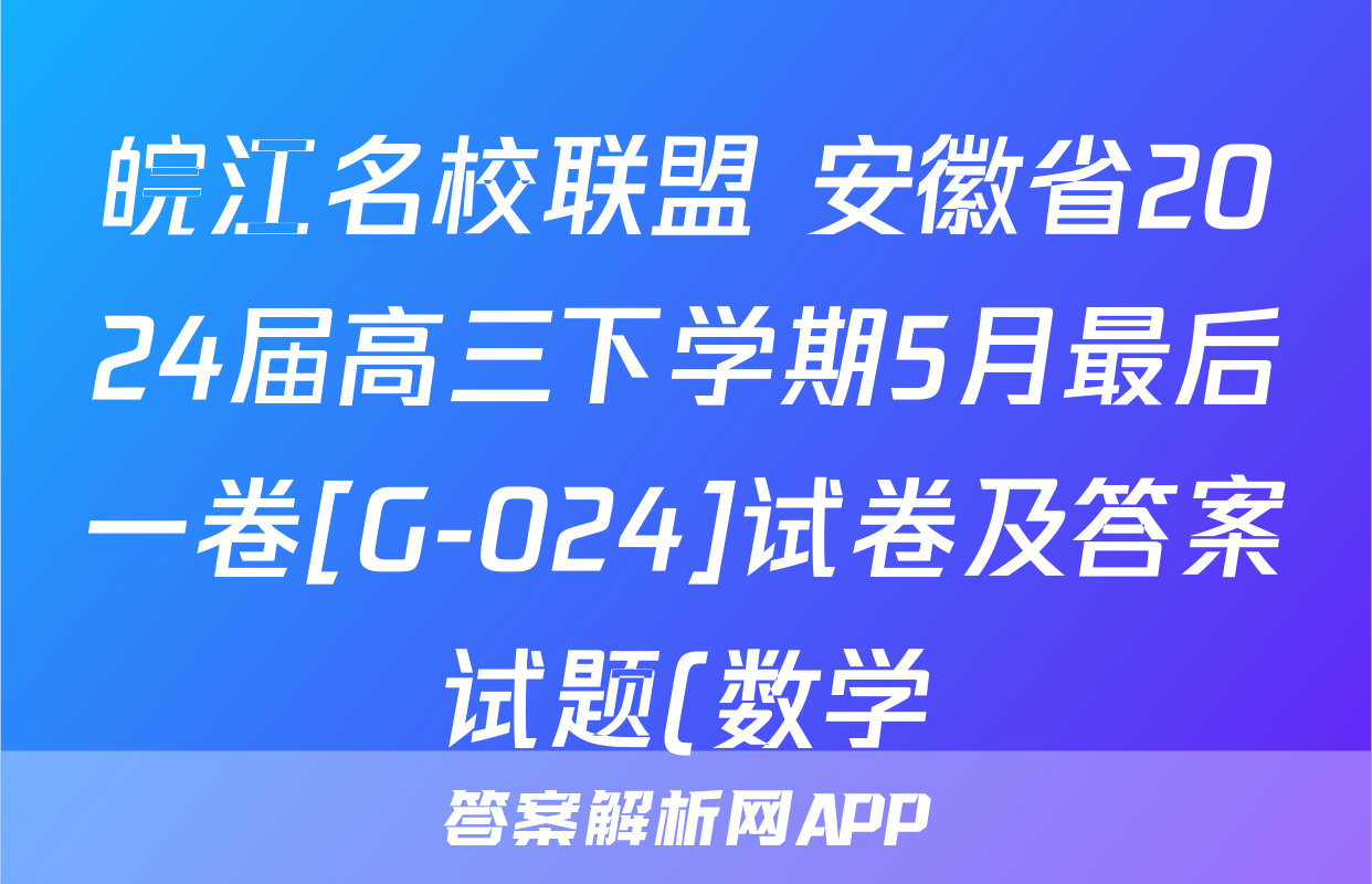 皖江名校联盟 安徽省2024届高三下学期5月最后一卷[G-024]试卷及答案试题(数学)正在持续更新,目前2026天舟高考答案网为大家整理了相关试题及答案,供大家查缺补漏,高效提升成绩。