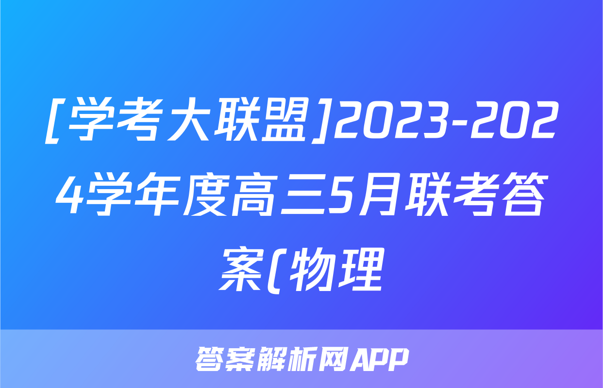 [学考大联盟]2023-2024学年度高三5月联考答案(物理)正在持续更新,目前2026天舟高考答案网为大家整理了相关试题及答案,供大家查缺补漏,高效提升成绩。