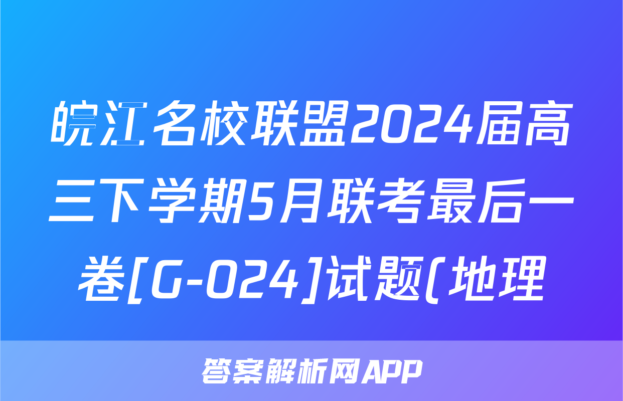 皖江名校联盟2024届高三下学期5月联考最后一卷[G-024]试题(地理)正在持续更新,目前2026天舟高考答案网为大家整理了相关试题及答案,供大家查缺补漏,高效提升成绩。