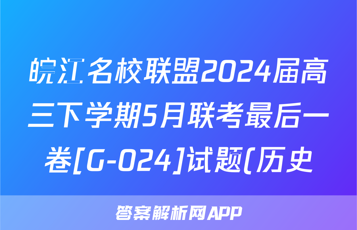 皖江名校联盟2024届高三下学期5月联考最后一卷[G-024]试题(历史)正在持续更新,目前2026天舟高考答案网为大家整理了相关试题及答案,供大家查缺补漏,高效提升成绩。