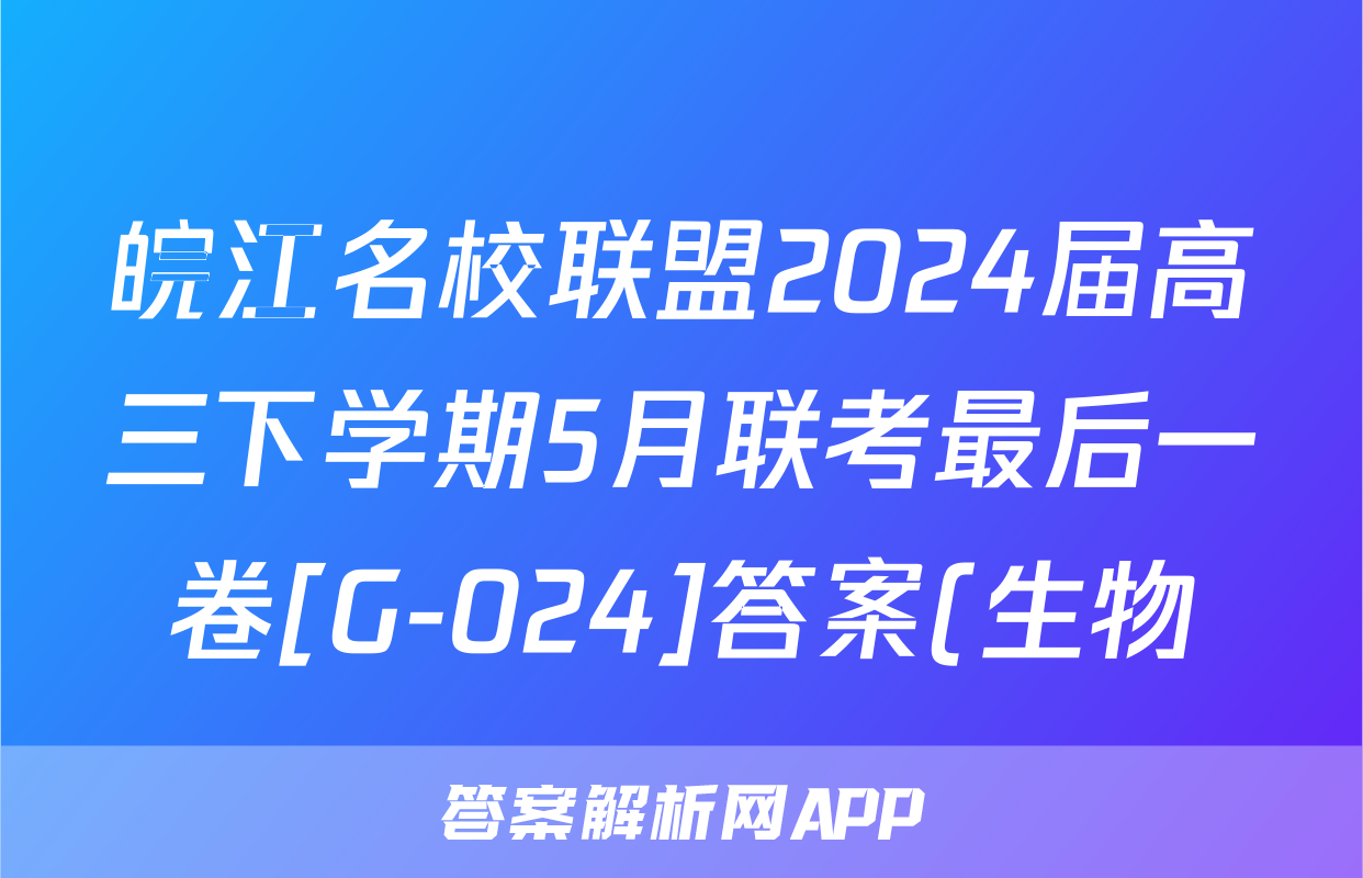 皖江名校联盟2024届高三下学期5月联考最后一卷[G-024]答案(生物)正在持续更新,目前2026天舟高考答案网为大家整理了相关试题及答案,供大家查缺补漏,高效提升成绩。