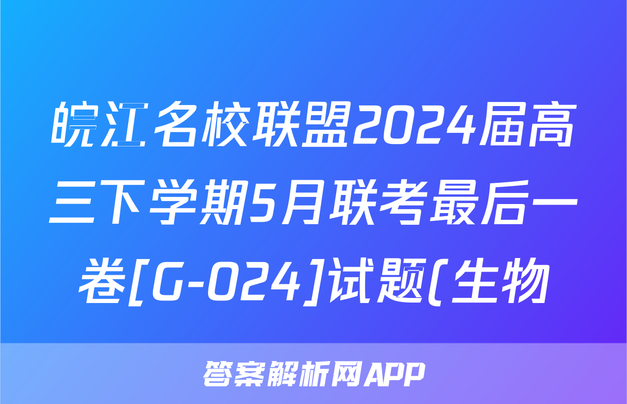 皖江名校联盟2024届高三下学期5月联考最后一卷[G-024]试题(生物)正在持续更新,目前2026天舟高考答案网为大家整理了相关试题及答案,供大家查缺补漏,高效提升成绩。