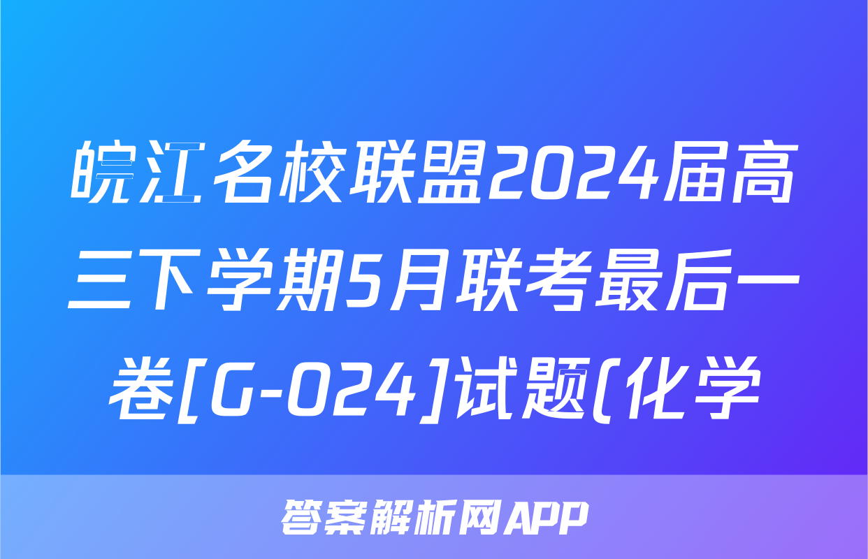 皖江名校联盟2024届高三下学期5月联考最后一卷[G-024]试题(化学)正在持续更新,目前2026天舟高考答案网为大家整理了相关试题及答案,供大家查缺补漏,高效提升成绩。