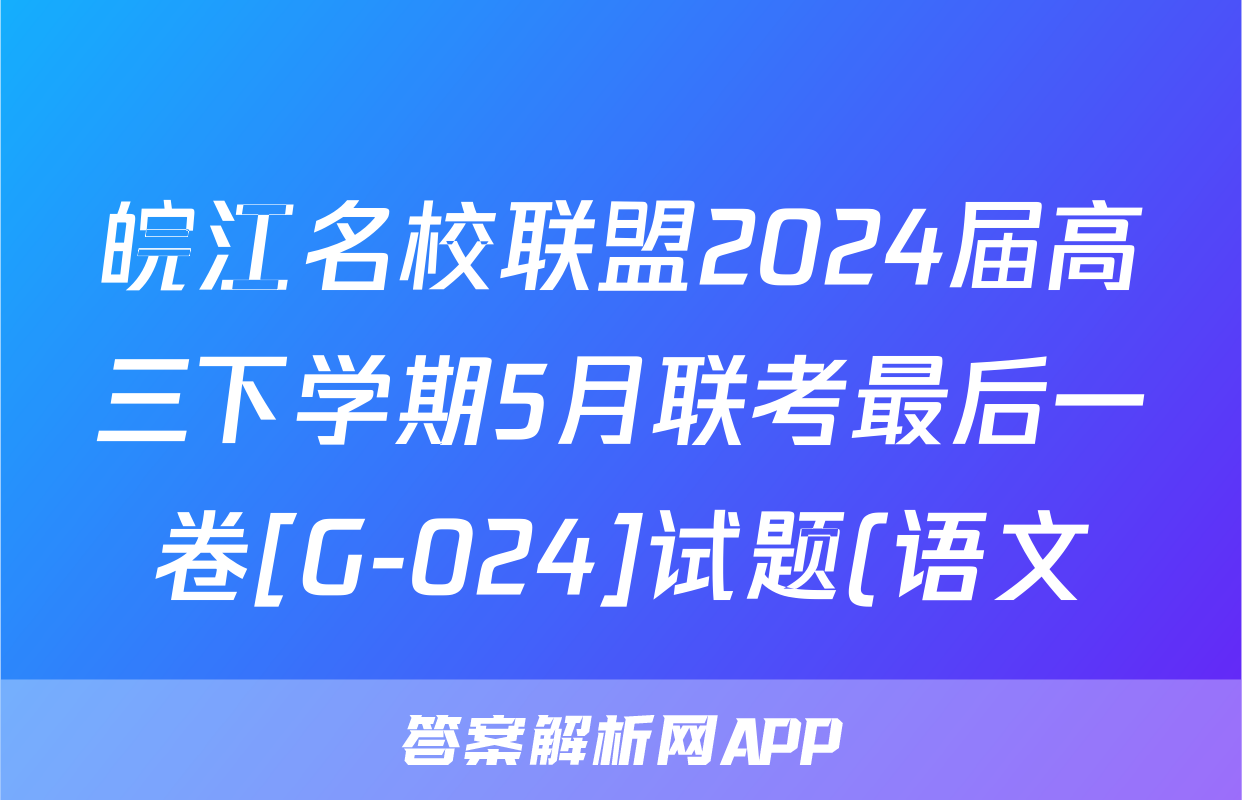 皖江名校联盟2024届高三下学期5月联考最后一卷[G-024]试题(语文)正在持续更新,目前2026天舟高考答案网为大家整理了相关试题及答案,供大家查缺补漏,高效提升成绩。