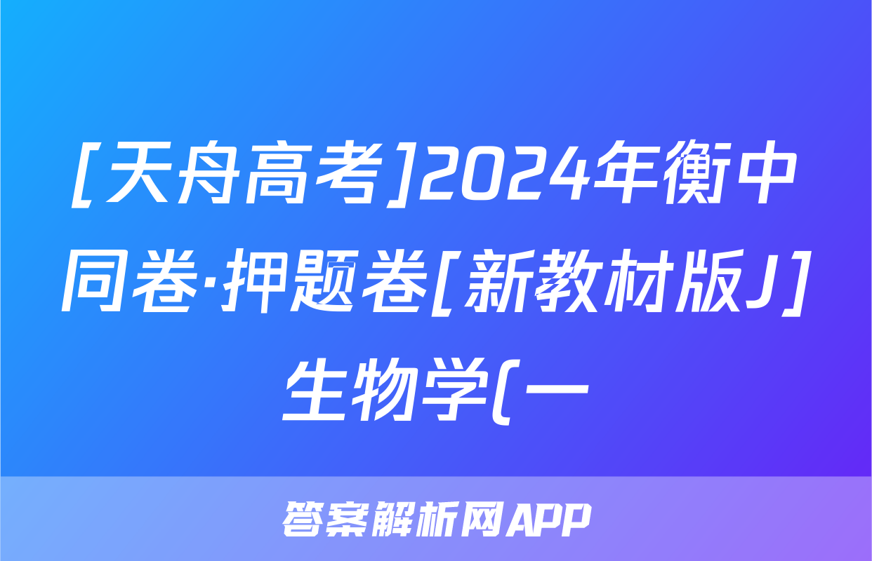 [天舟高考]2024年衡中同卷·押题卷[新教材版J]生物学(一)1试题正在持续更新,目前2026天舟高考答案网为大家整理了相关试题及答案,供大家查缺补漏,高效提升成绩。