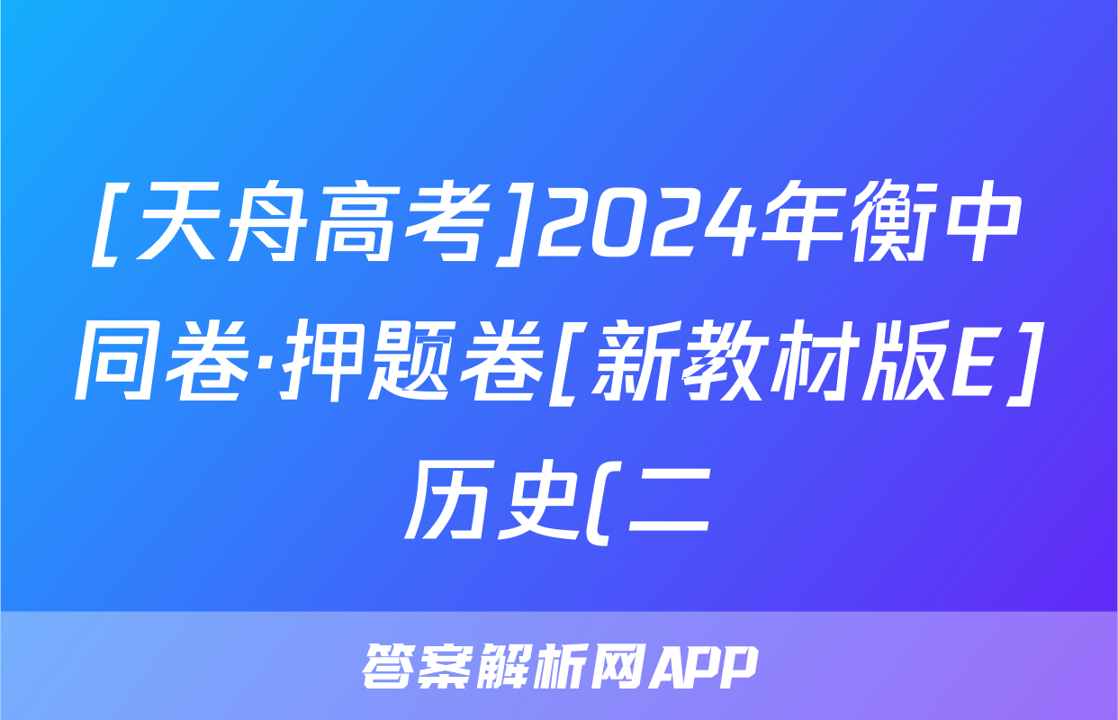 [天舟高考]2024年衡中同卷·押题卷[新教材版E]历史(二)2试题正在持续更新,目前2026天舟高考答案网为大家整理了相关试题及答案,供大家查缺补漏,高效提升成绩。