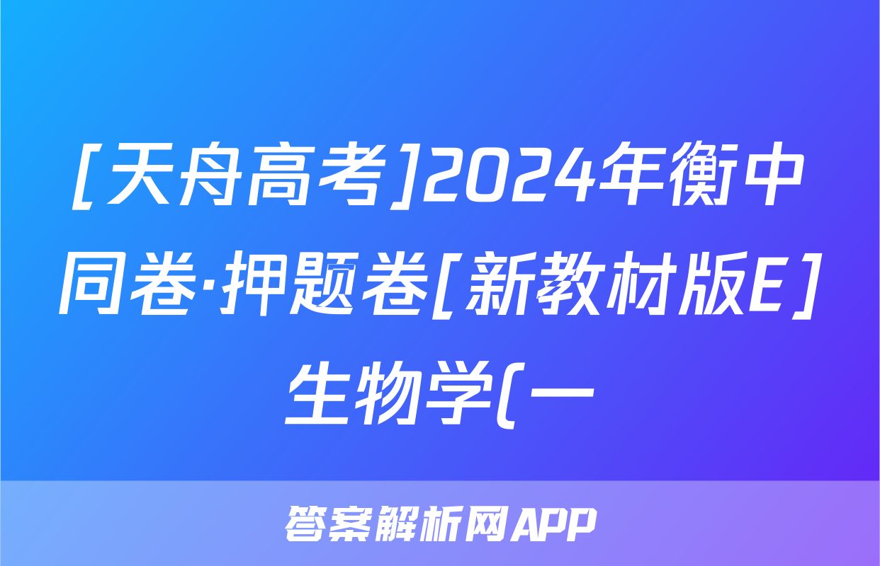 [天舟高考]2024年衡中同卷·押题卷[新教材版E]生物学(一)1答案正在持续更新,目前2026天舟高考答案网为大家整理了相关试题及答案,供大家查缺补漏,高效提升成绩。