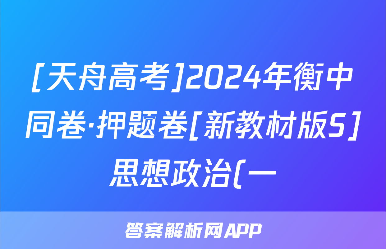[天舟高考]2024年衡中同卷·押题卷[新教材版S]思想政治(一)1答案正在持续更新,目前2026天舟高考答案网为大家整理了相关试题及答案,供大家查缺补漏,高效提升成绩。