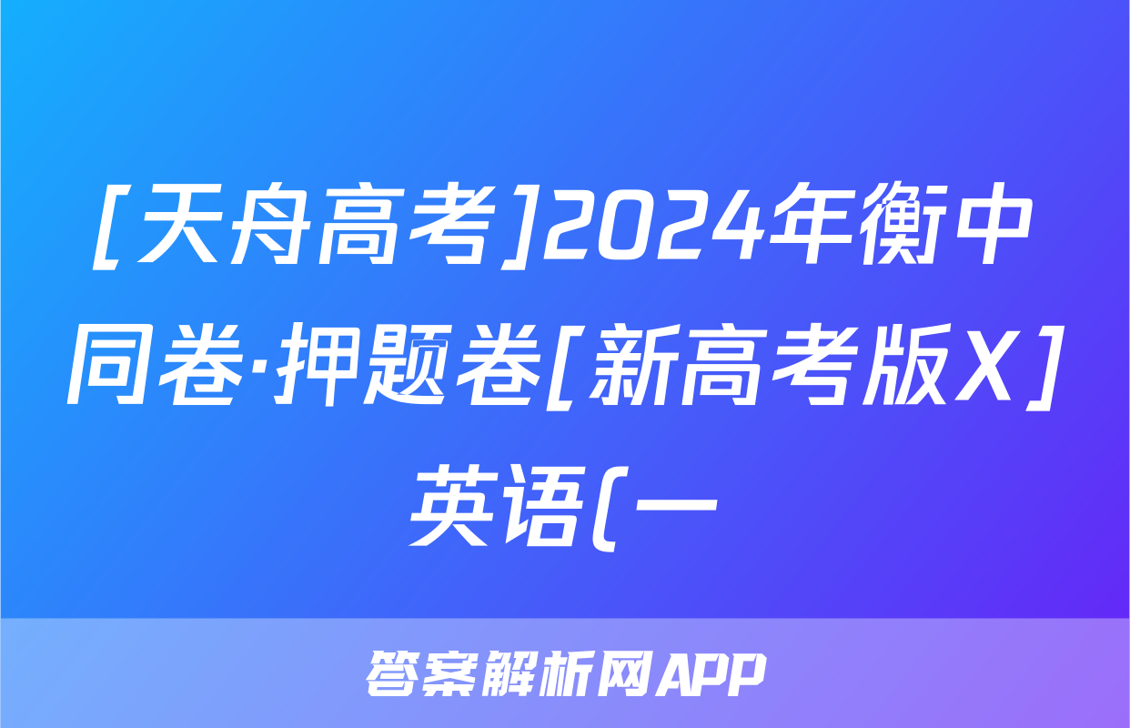 [天舟高考]2024年衡中同卷·押题卷[新高考版X]英语(一)1答案正在持续更新,目前2026天舟高考答案网为大家整理了相关试题及答案,供大家查缺补漏,高效提升成绩。