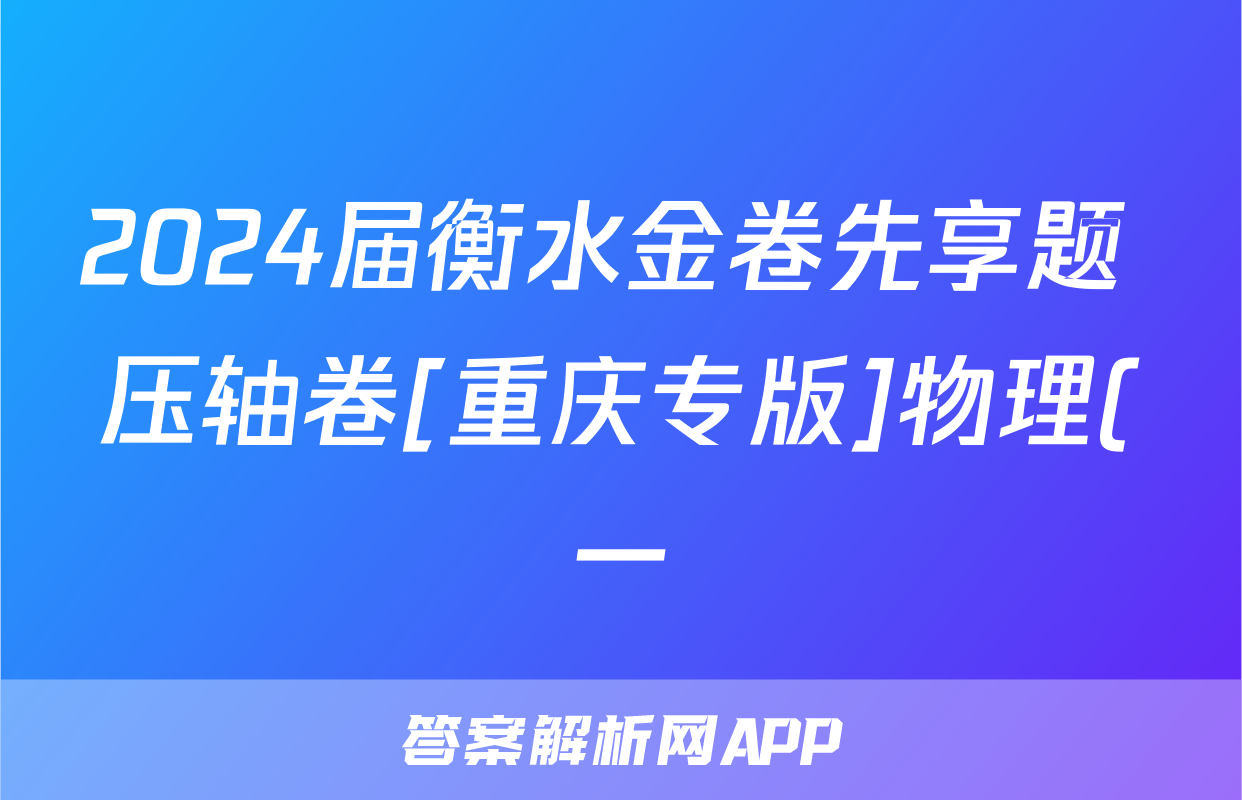 2024届衡水金卷先享题 压轴卷[重庆专版]物理(一)1答案正在持续更新,目前2026天舟高考答案网为大家整理了相关试题及答案,供大家查缺补漏,高效提升成绩。